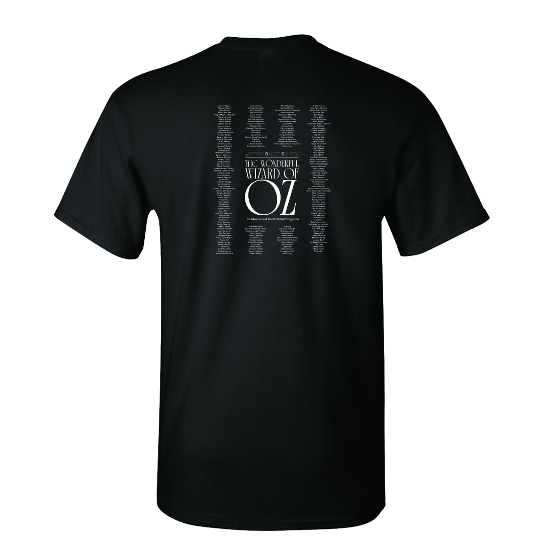 This Short Sleeved black T-shirt has the “Wizard of Oz” logo on the front and the full Children’s and Youth Ballet Programs cast list on the back. The shirts are 100% cotton. Deadline for pre-order is April 6 by 5pm EST. Shirts will be distributed at the run-through rehearsals.